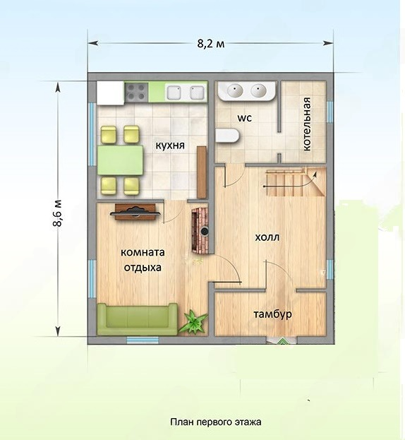 Функциональная и грамотная планировка решает все бытовые вопросы, которые могут возникнуть при проживании. На первом этаже комната отдыха соседствует с кухней и просторным холлом. Второй этаж отдан под спальную зону, в трех спальнях могут комфортно расположиться как хозяева, так и приезжие гости.