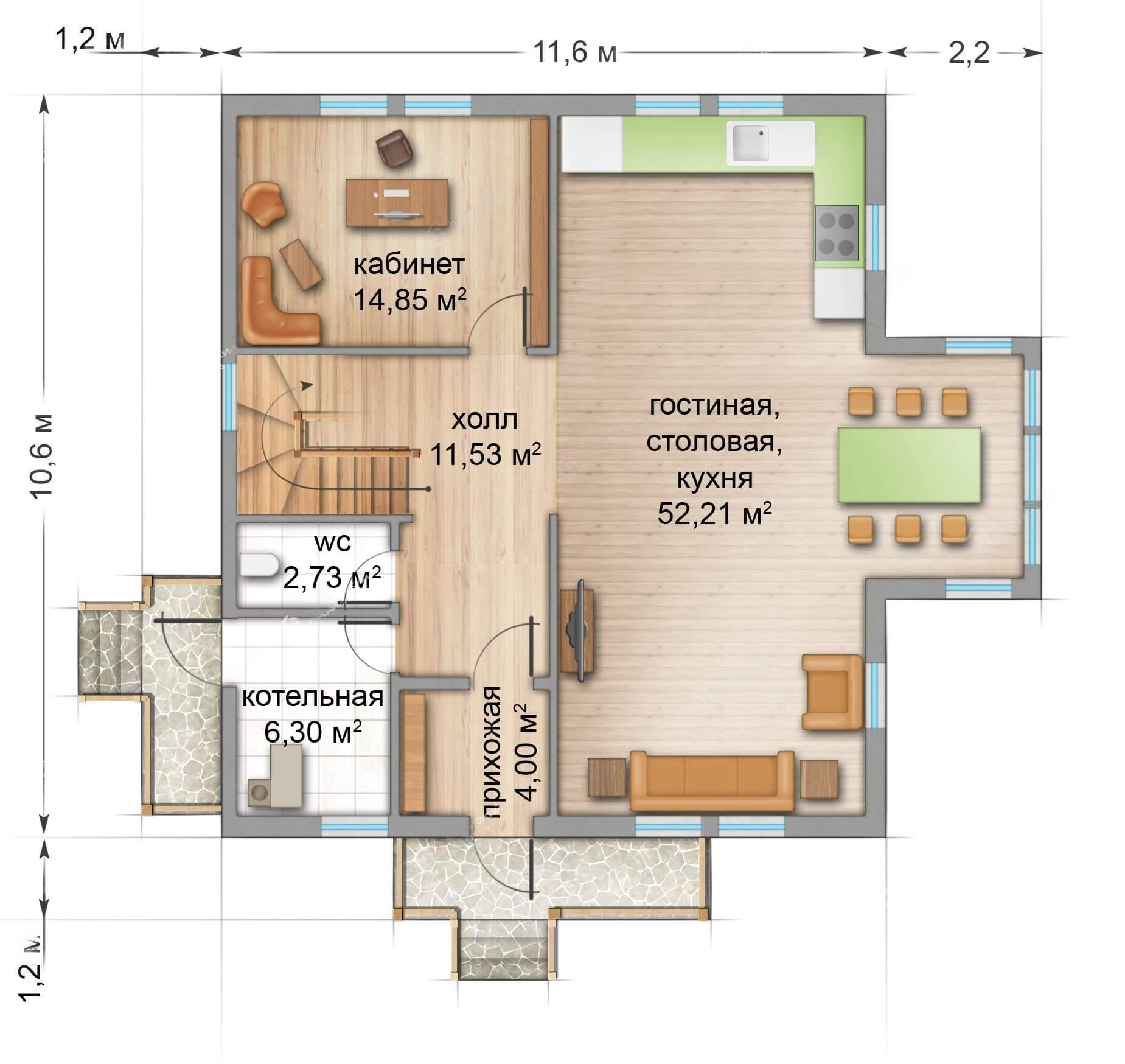 Дом из газобетона ГБ-44 88, 85 кв.м