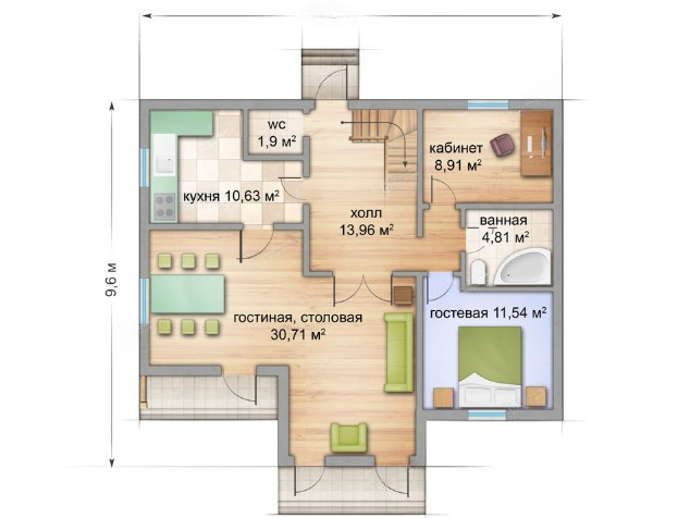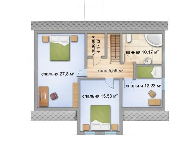 В этом компактном и уютном особняке есть всё необходимое для комфортной жизни. Каждый из этажей дома наделен своей определенной функцией.
