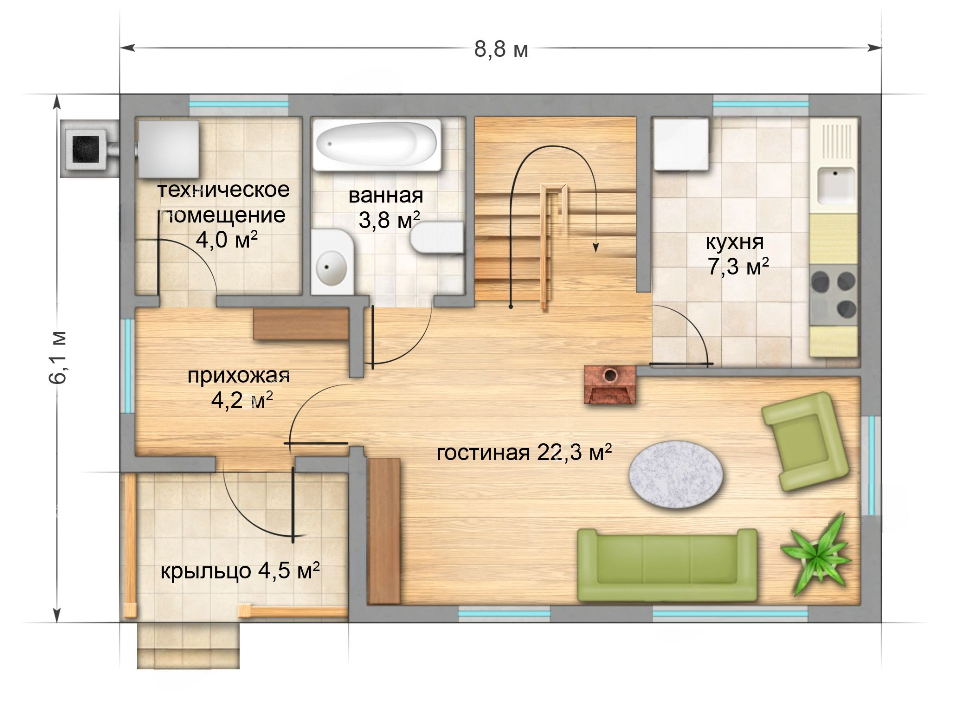 Дом из газобетона ГБ-44 88, 85 кв.м