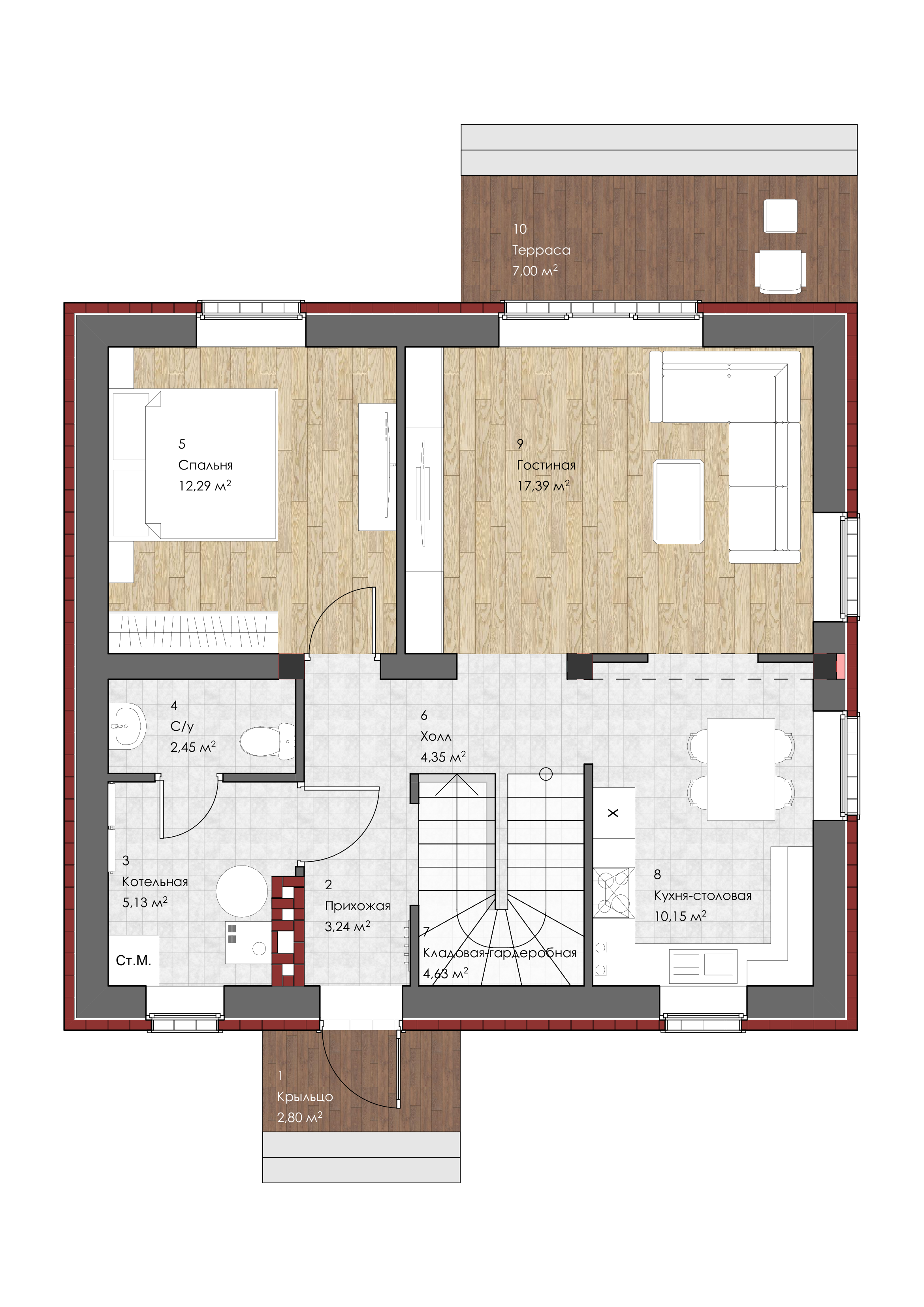 Дом из газобетона ГБ-44 88, 85 кв.м