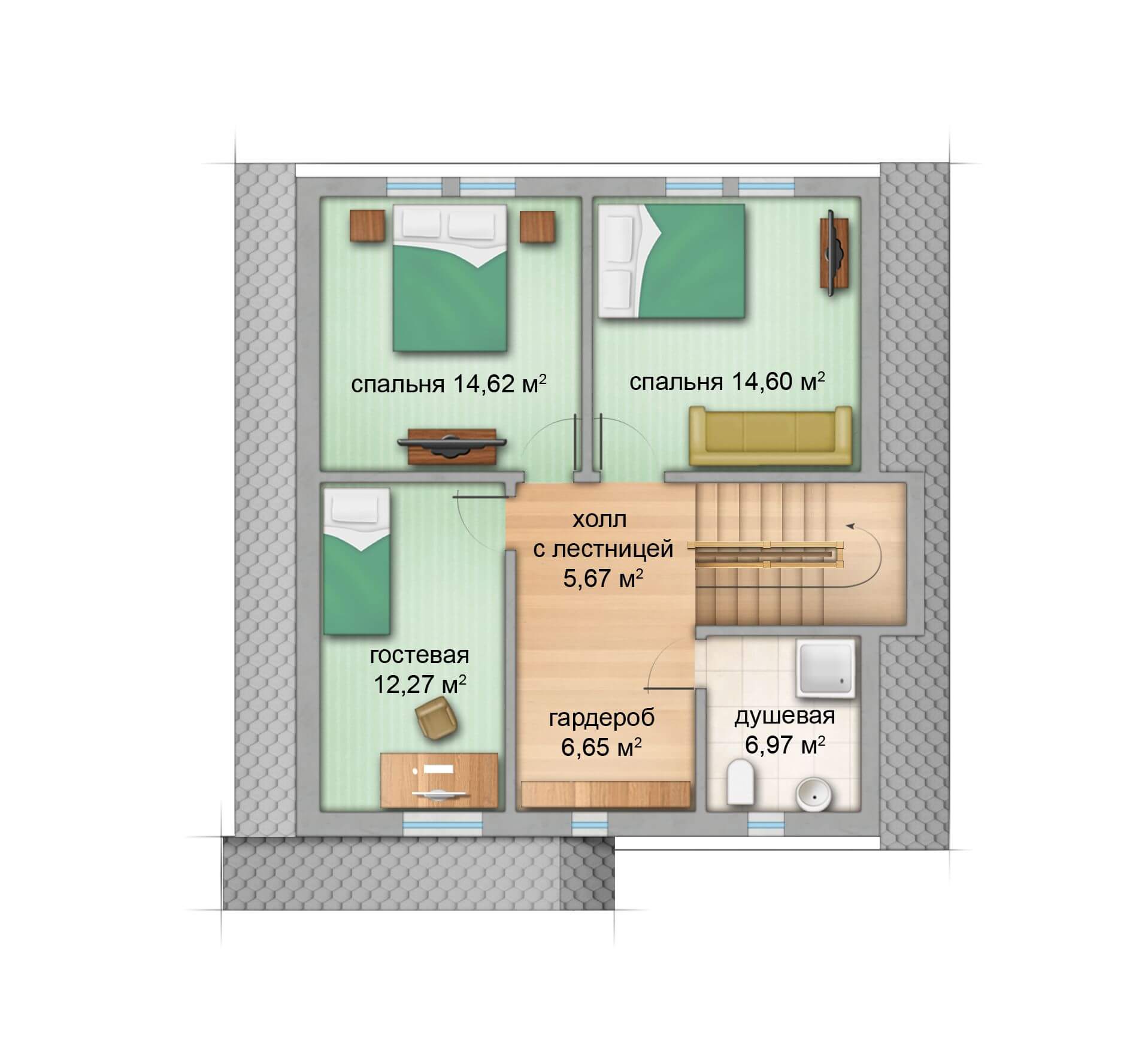 Современный каркасный дом "Суна" общей площадью 130м2 предназначен для семьи до 7 человек. Лаконичность архитектуры дома без свесов крыши и современный дизайн отделки фасада выделяют каркасный дом "Суна" среди серых типовых построек. Внутренняя планировка дома очень удобна: мансардный этаж полностью выделен под спальную зону, первый этаж-зона общего пользования и приема гостей. Кухня и гостиная имеют по несколько окон, что делает пространство светлым и уютным.