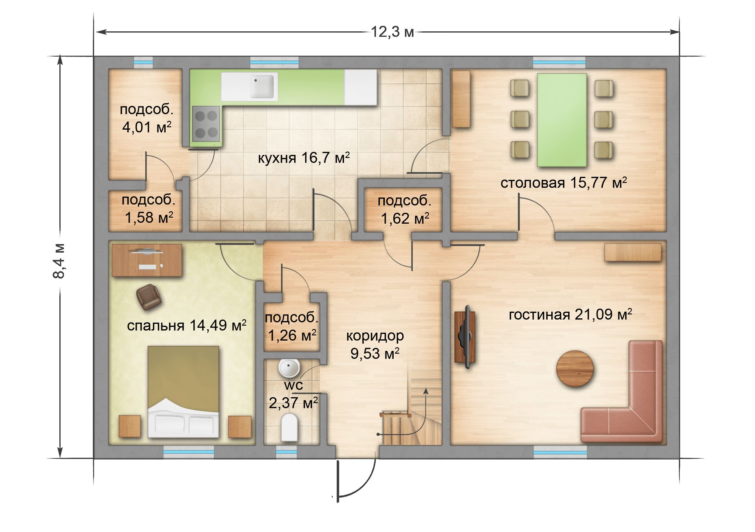 Среди каркасных домов для круглогодичного проживания канадский дом Вирма занимает особое место. От других проектов его отличает оригинальная архитектура: большую часть первого этажа занимают просторная кухня и не менее просторная комната отдыха. Кроме этого, здесь находятся столовая, гостевая, санузел и целых четыре подсобных помещения. Если нужен каркасный дом для ПМЖ, рассчитанный на семью из 4-х человек или более, Вирма – оптимальный вариант.
