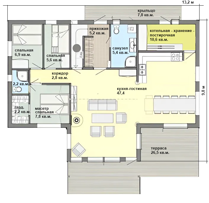 - Мастер-спальня с собственным гардеробом и ванной комнатой