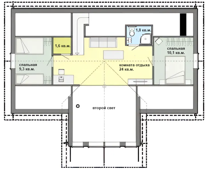 - Дополнительная зона отдыха на мансардном этаже с балконом на второй свет