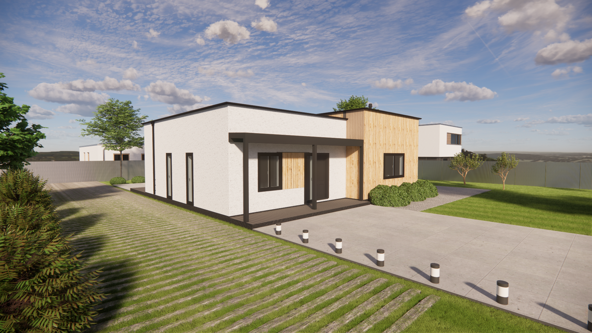 Комплект каркаса "Амика" - это современный просторный одноэтажный дом для комфортного проживания небольшой семьи.
