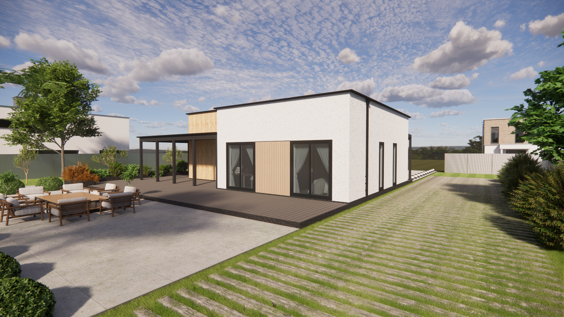 При таком размещении дома терраса утром будет наполнена солнечным светом для отличного начала дня.