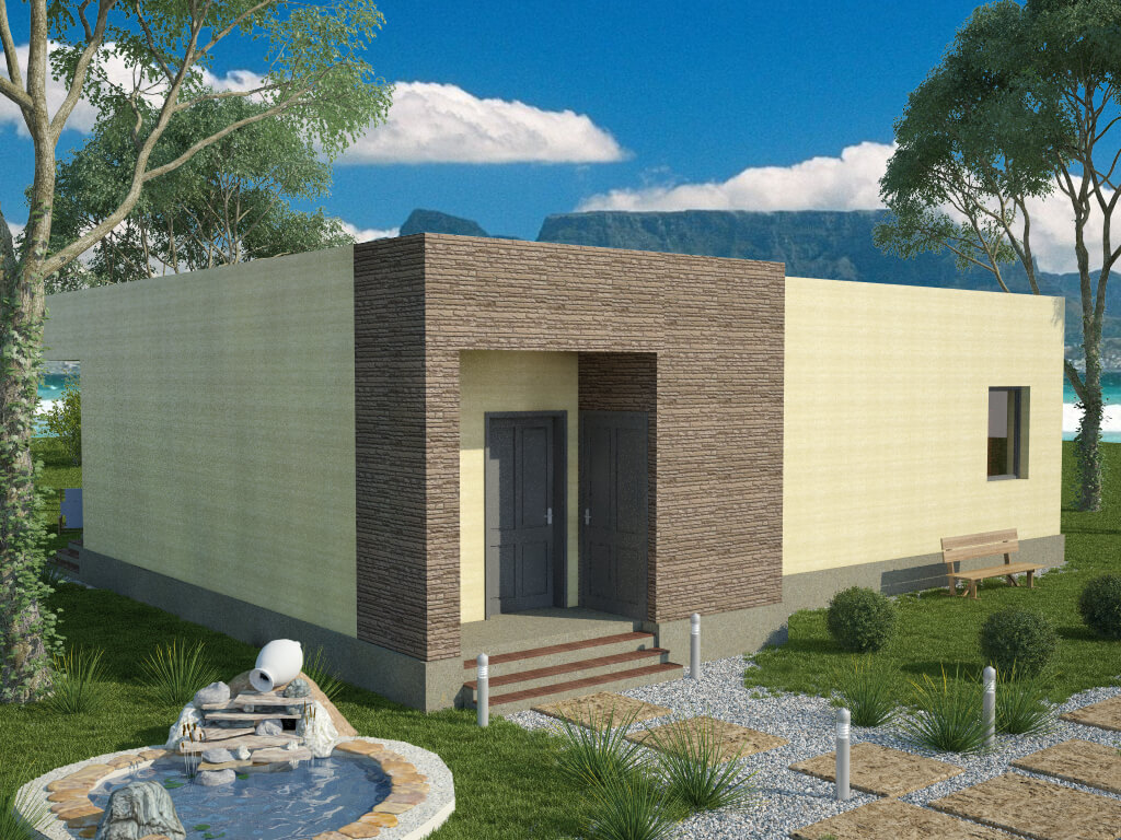 Элегантный, практичный и экономичный дом в стиле модерн, небольшой по размеру. Изысканный стиль дома подчёркивает не только кубическая форма в основе, но и внешняя отделка, для которой используются натуральные цвета тёплого песочного оттенка.
