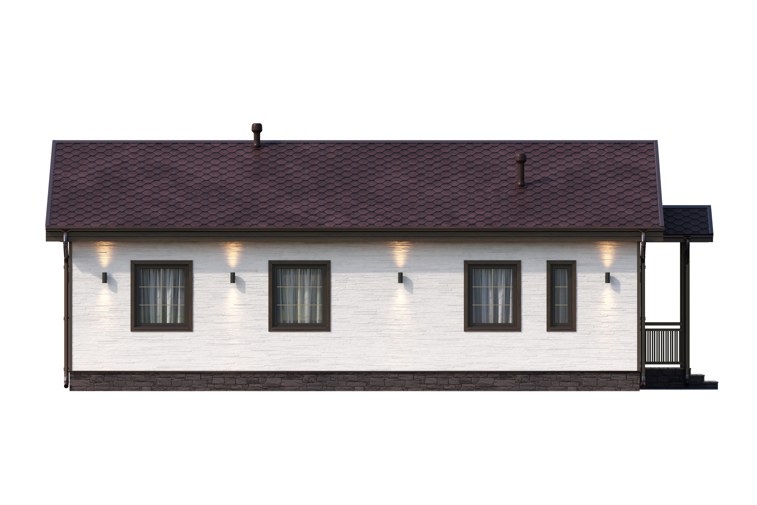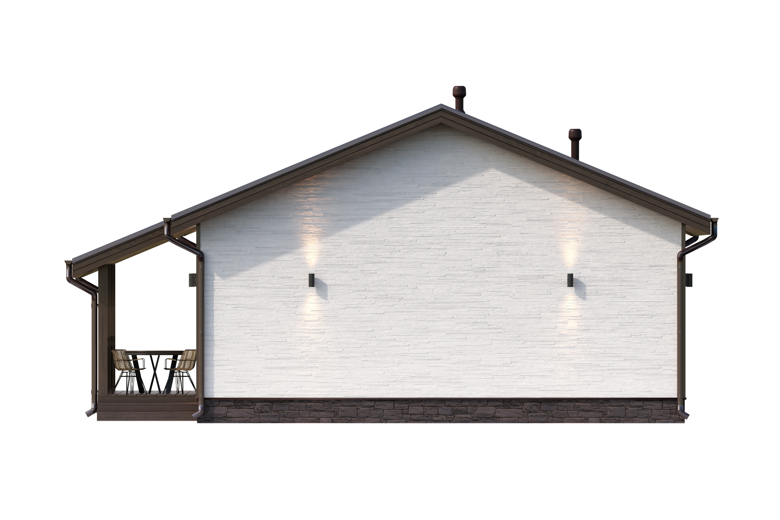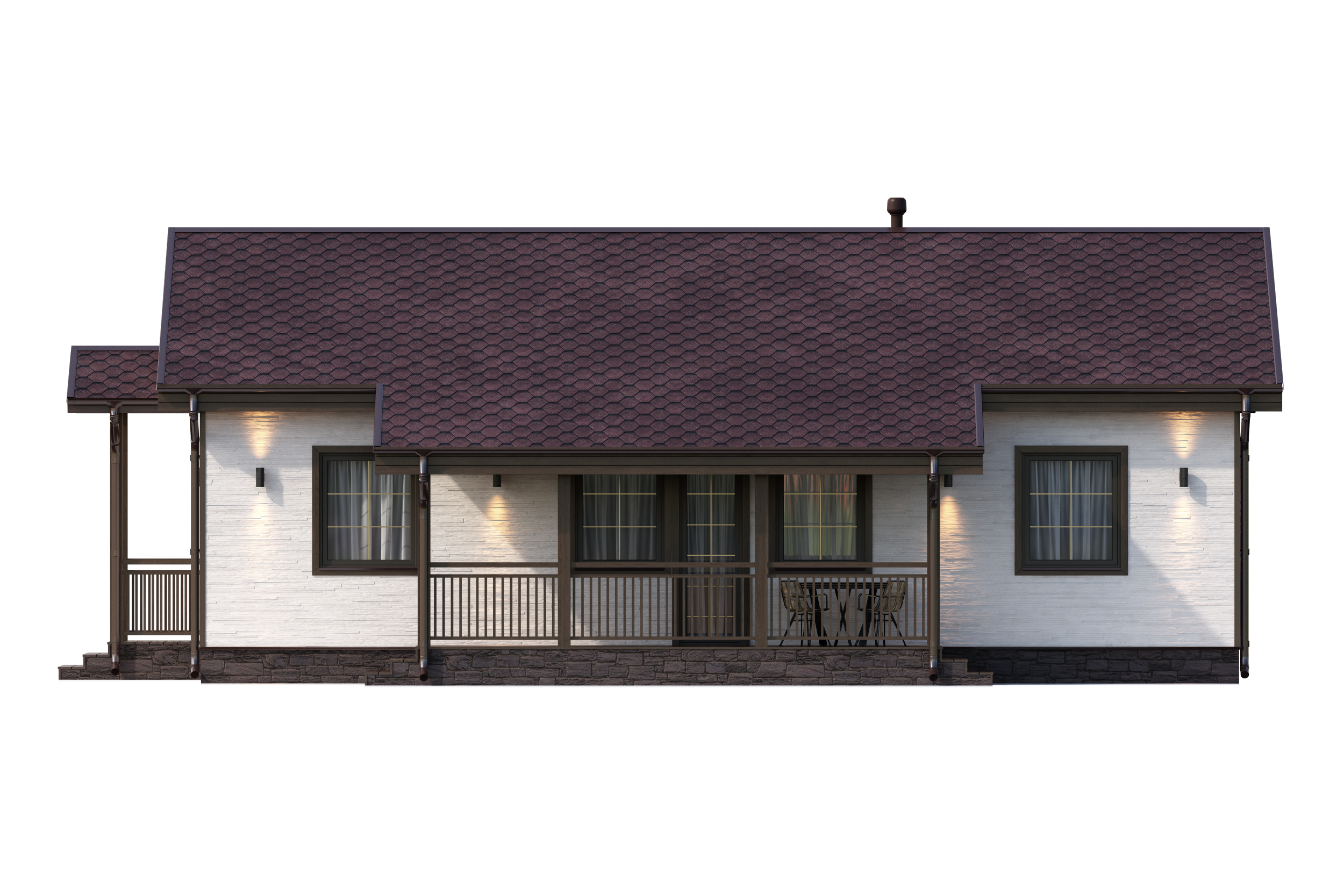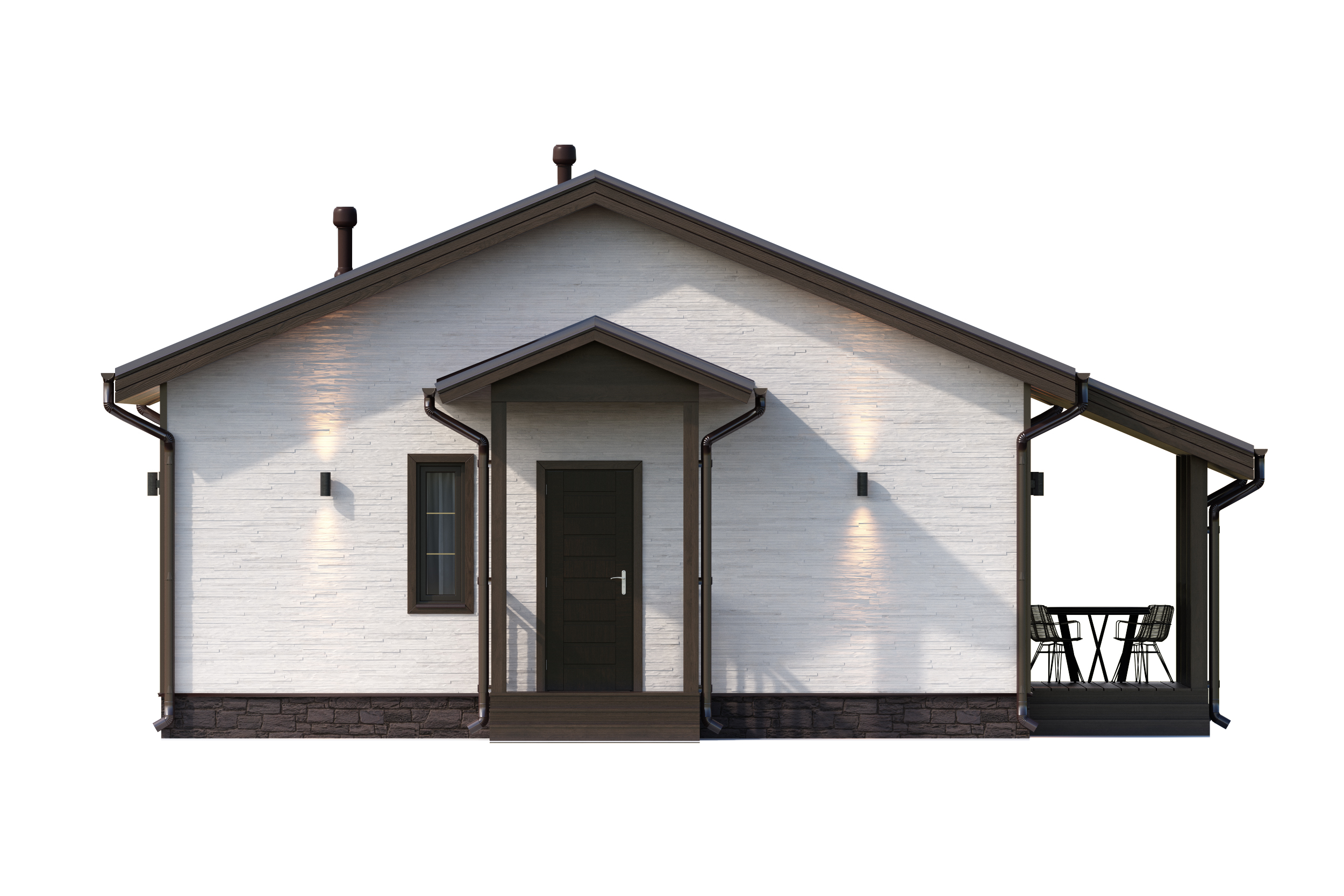Планировка дома предполагает наличие трех спален - две по 13.93 и одну в 10.30 м², кухню - столовую в 15.19 м², совмещенную общим пространством с зоной гостиной в 21.76 м² и имеющей выход на террасу в 11.08 м², санузел 2.07 м², душевую 2.71 м², техническое помещение 3.87 м², а также тамбур 1.80 м² и коридор 4.28 м².