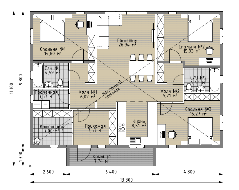 Общая площадь дома - 116 м