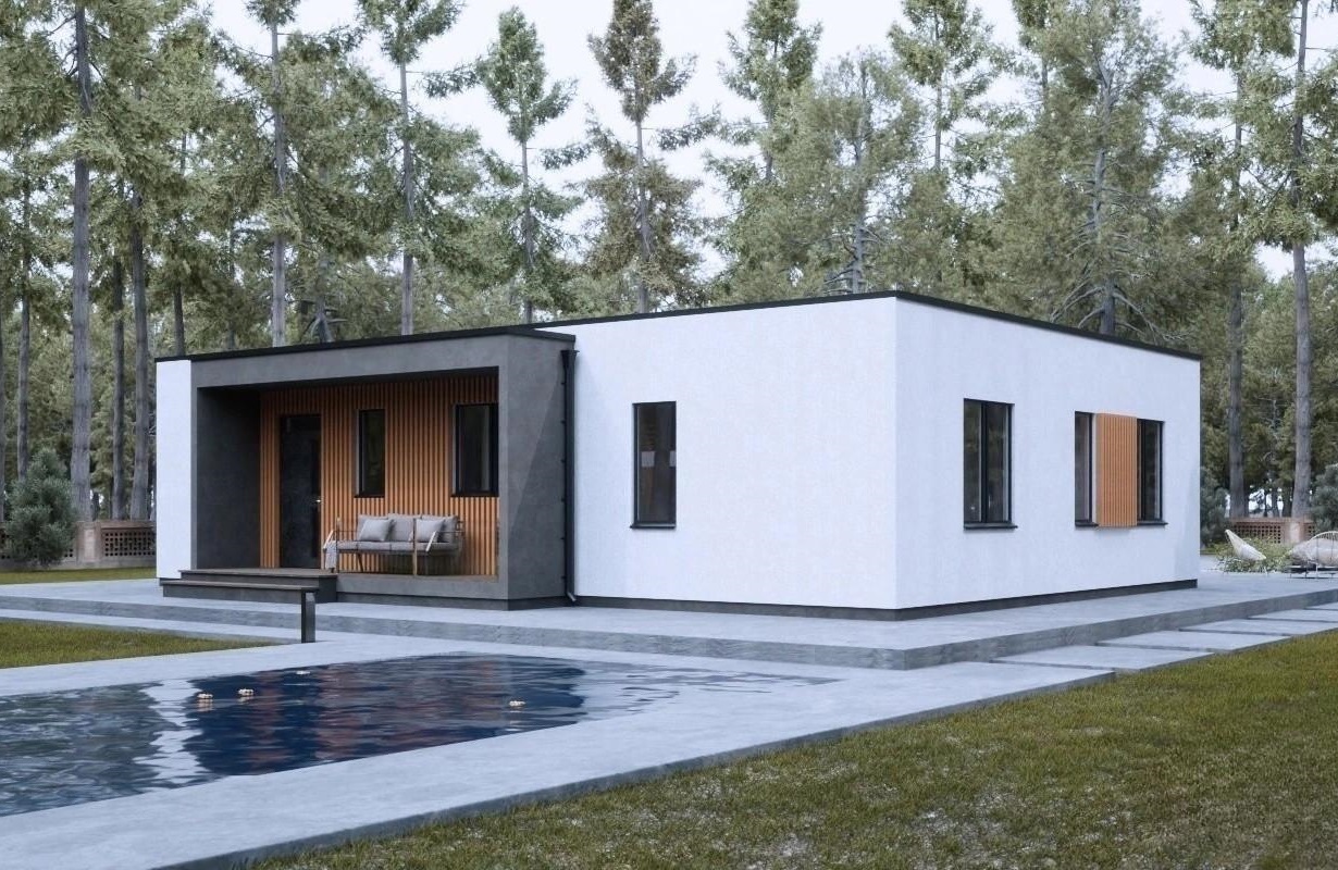 Современный просторный одноэтажный дом для комфортного проживания небольшой семьи.