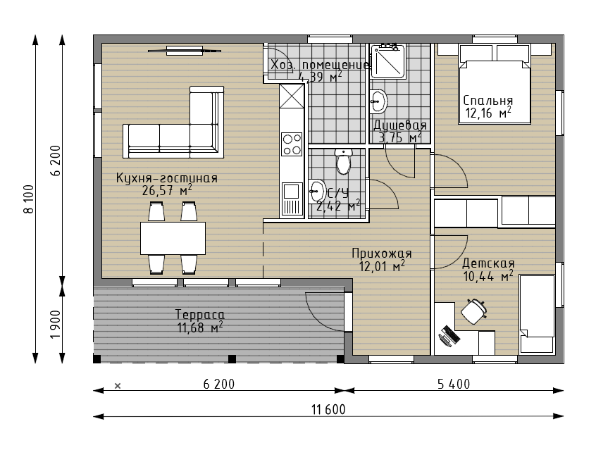 Небольшие габариты дома хорошо разместятся даже на маленьком земельном участке.