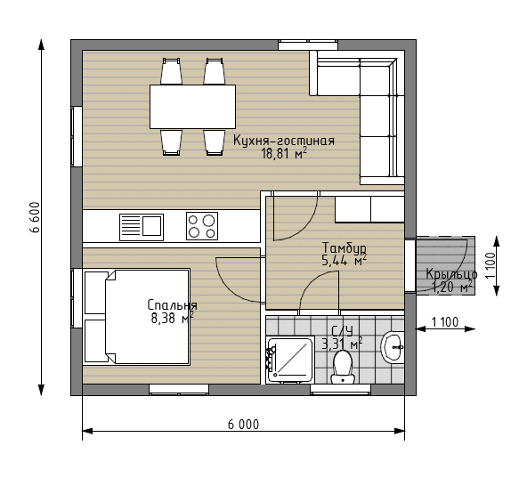 Проект каркасного дома Асилан площадью 35,1 м2 – прекрасное решение для тех, кому нужен небольшой дом для отдыха или постоянного проживания.
