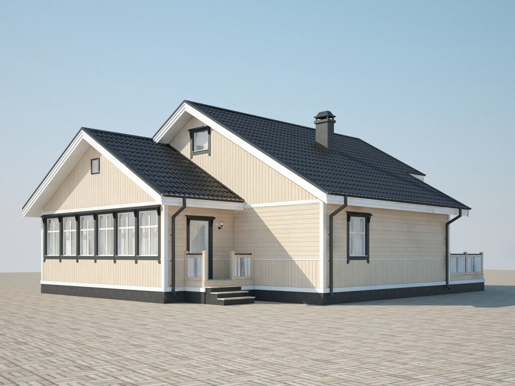 Проектом предусмотрены два входа в дом, а также наличие сауны.