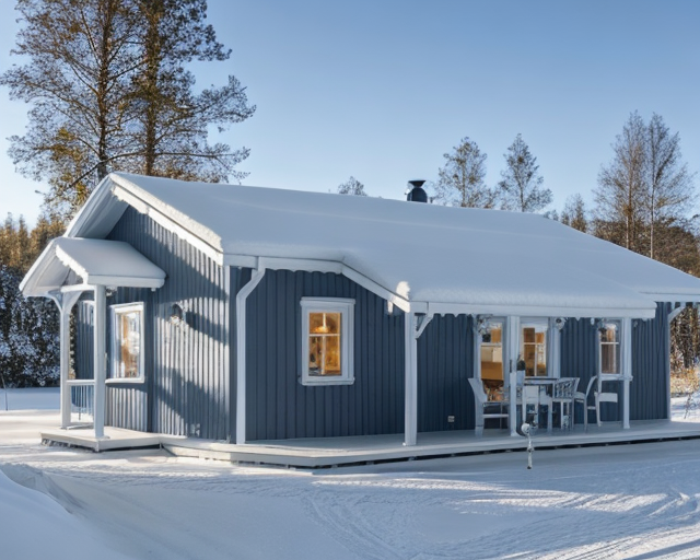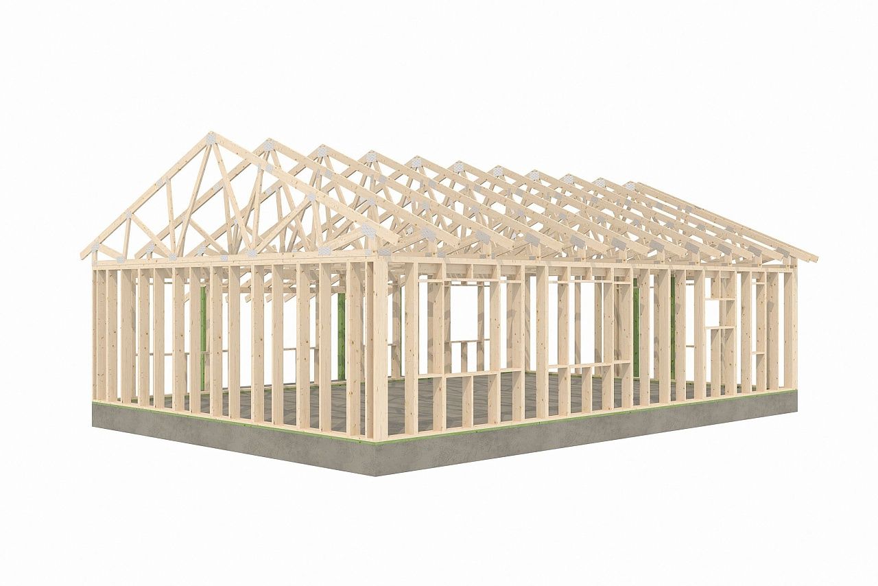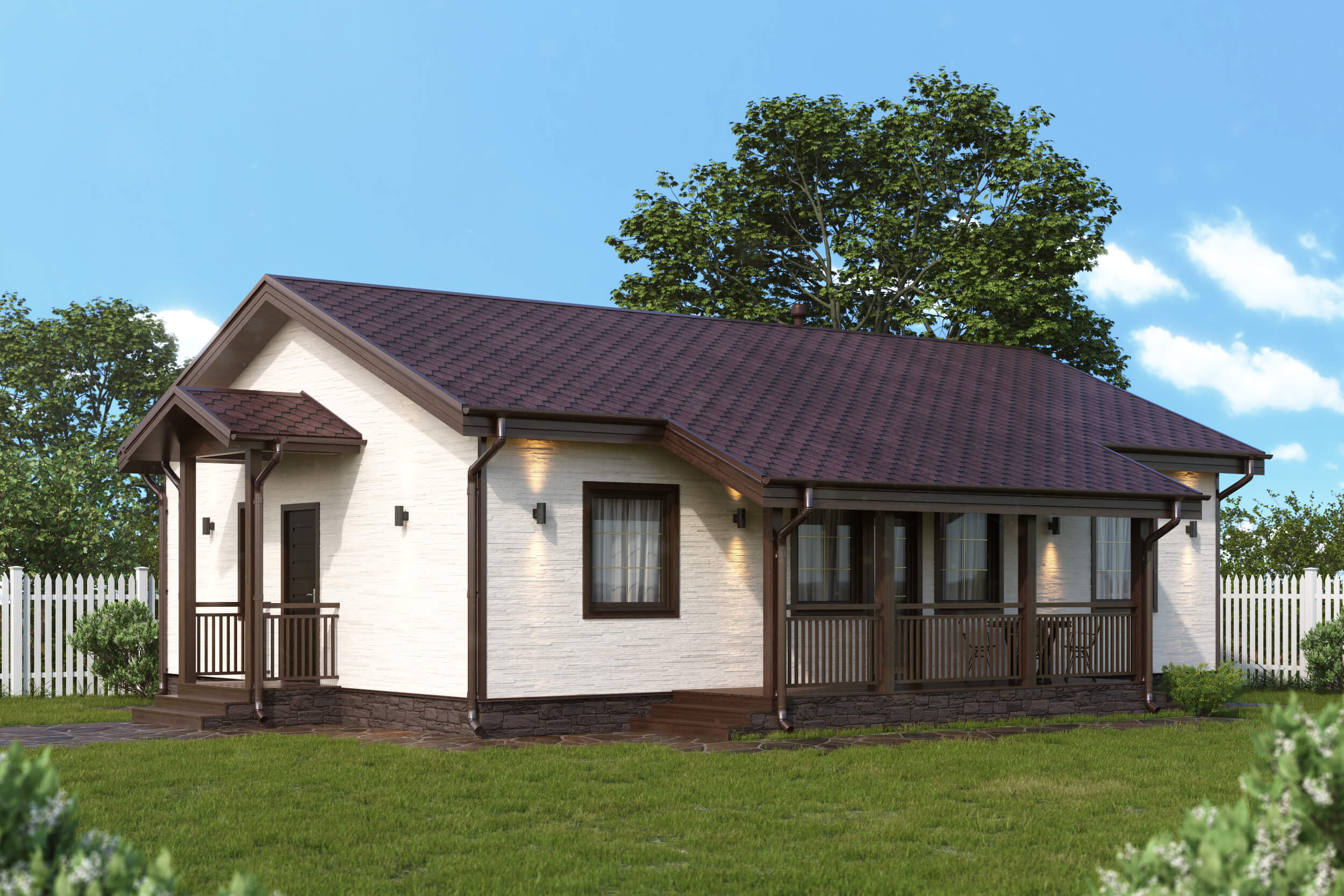 Планировка дома предполагает наличие трех спален - две по 13.93 и одну в 10.30 м², кухню - столовую в 15.19 м², совмещенную общим пространством с зоной гостиной в 21.76 м² и имеющей выход на террасу в 11.08 м², санузел 2.07 м², душевую 2.71 м², техническое помещение 3.87 м², а также тамбур 1.80 м² и коридор 4.28 м².