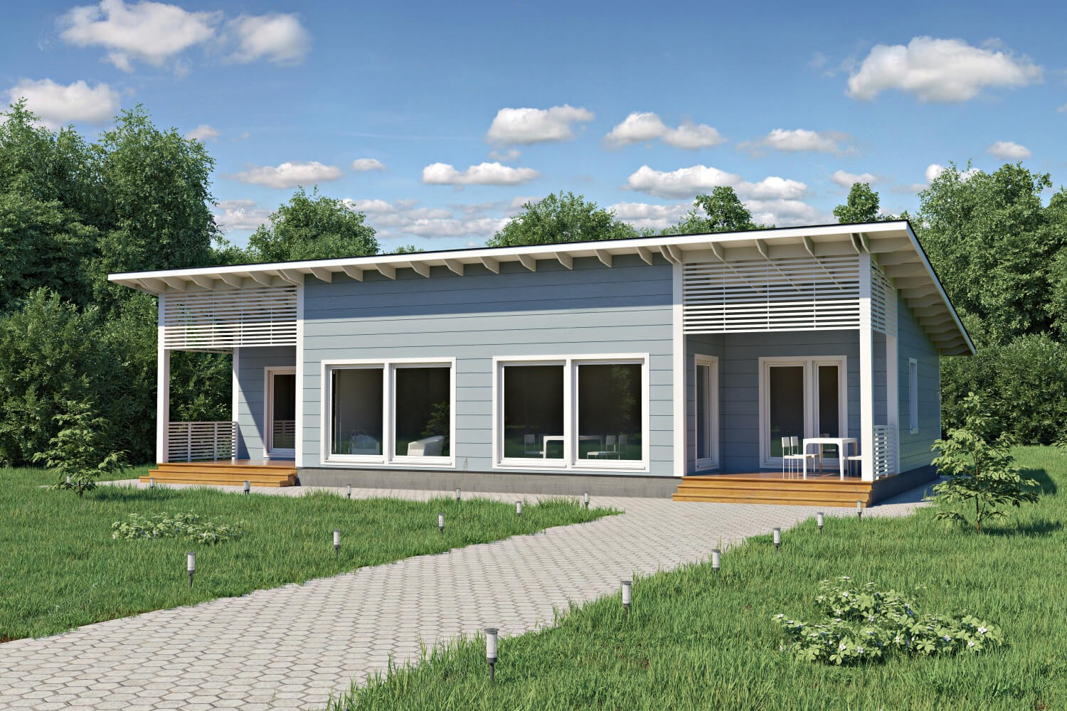 Построенный в данном стиле дом, является вызовом всем архитектурным решениям и консервативным устоям. Скаты крыш таких домов, либо усечены, либо являются плоскими. Большие окна пропускают максимум света.