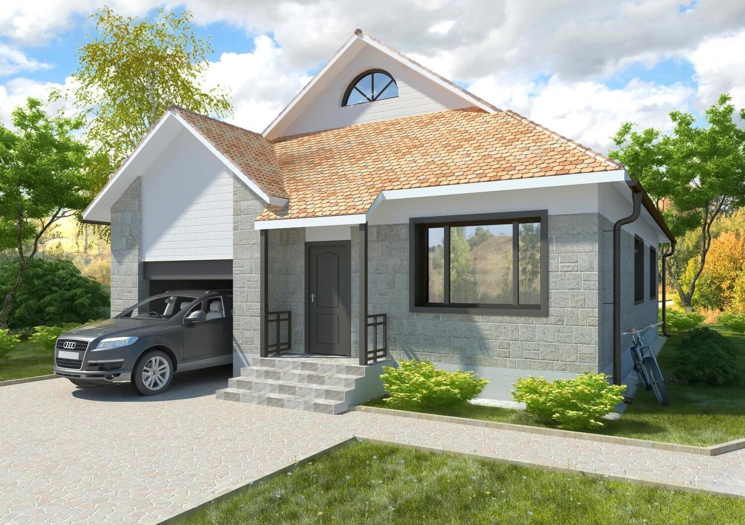 Из прихожей Вы можете зайти как в холл, так и в гараж. Гостиная располагается в центре дома. Она совмещена с холлом, что позволяет избежать ненужных коридоров и при этом создается ощущение большого пространства.