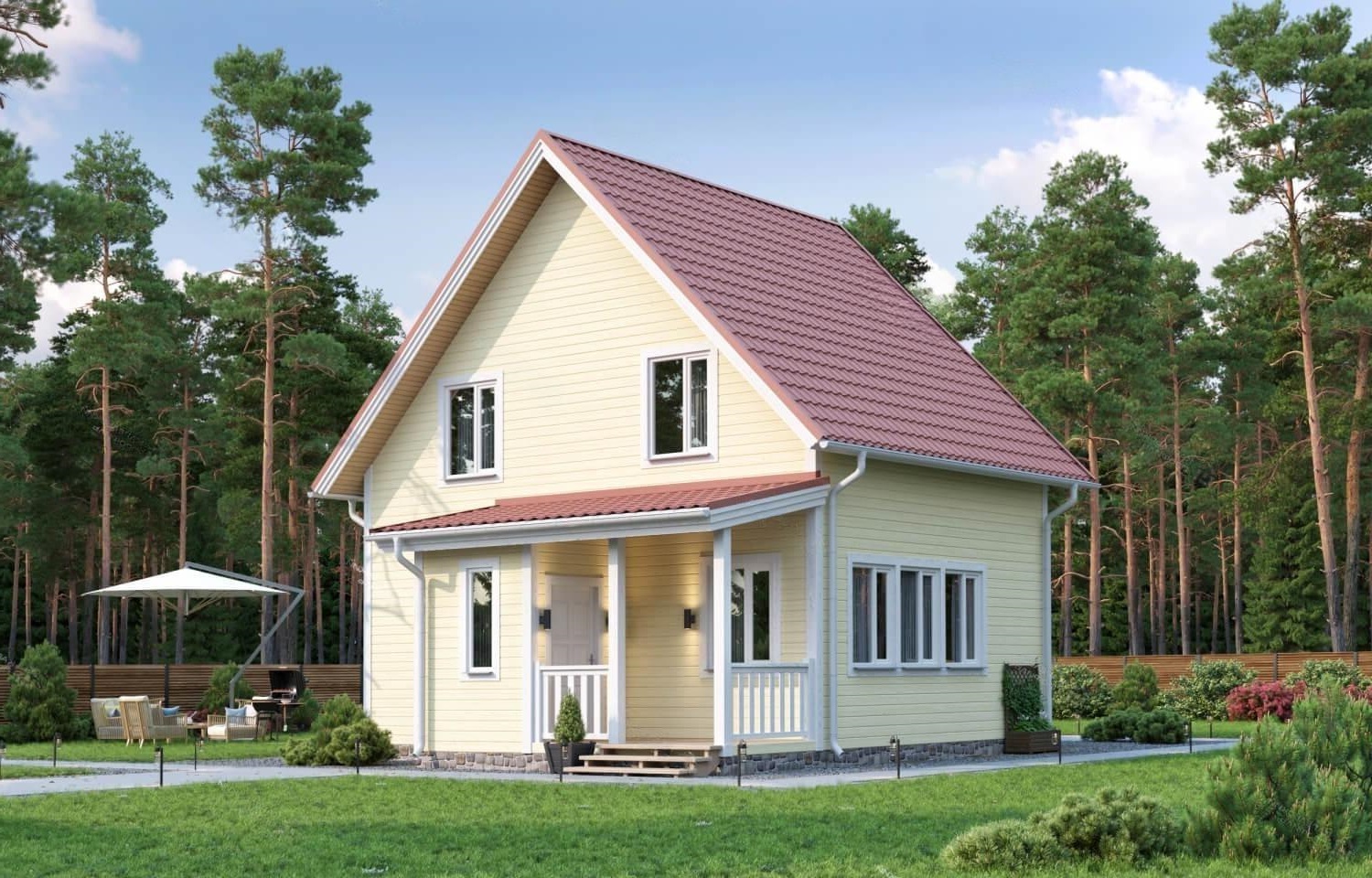 Дополнительными преимуществами этого дома являются малая площадь застройки, простая планировка и двускатная крыша, что значительно удешевляет строительство. За счет практически квадратной формы, дом возможно расположить на участке любого размера и формы.