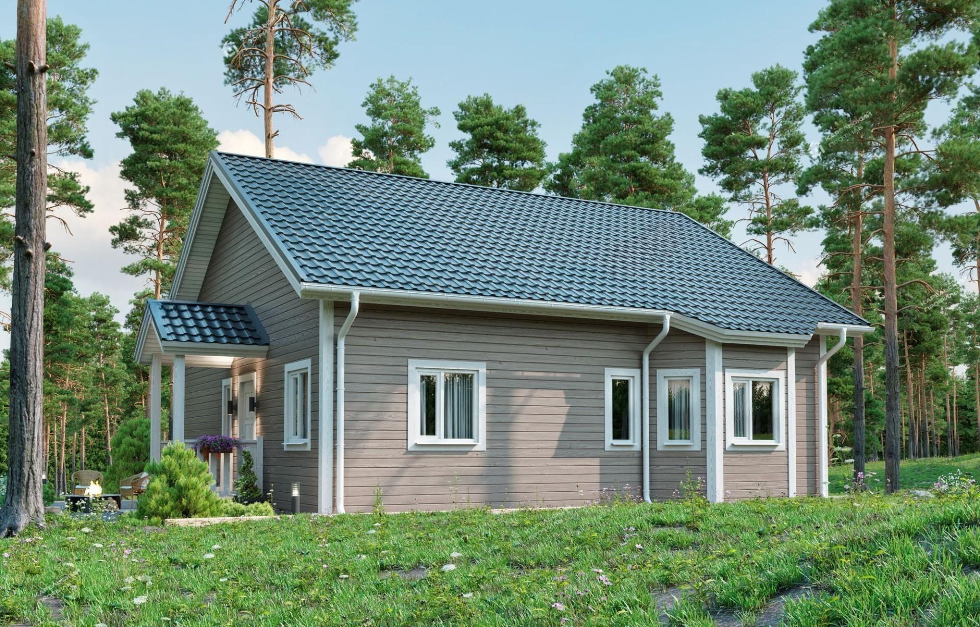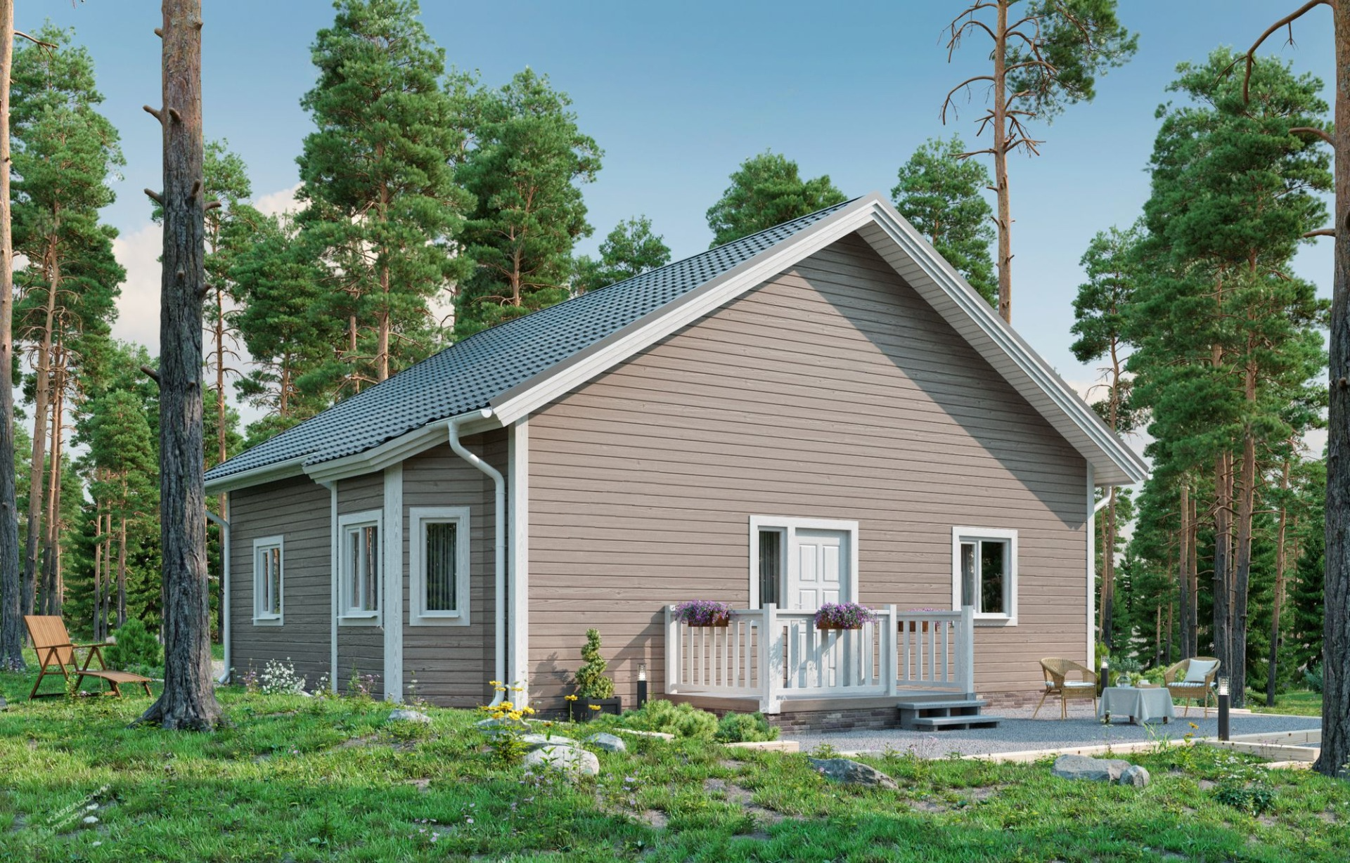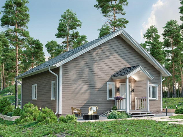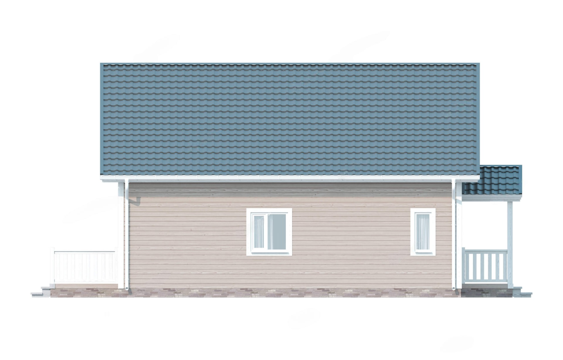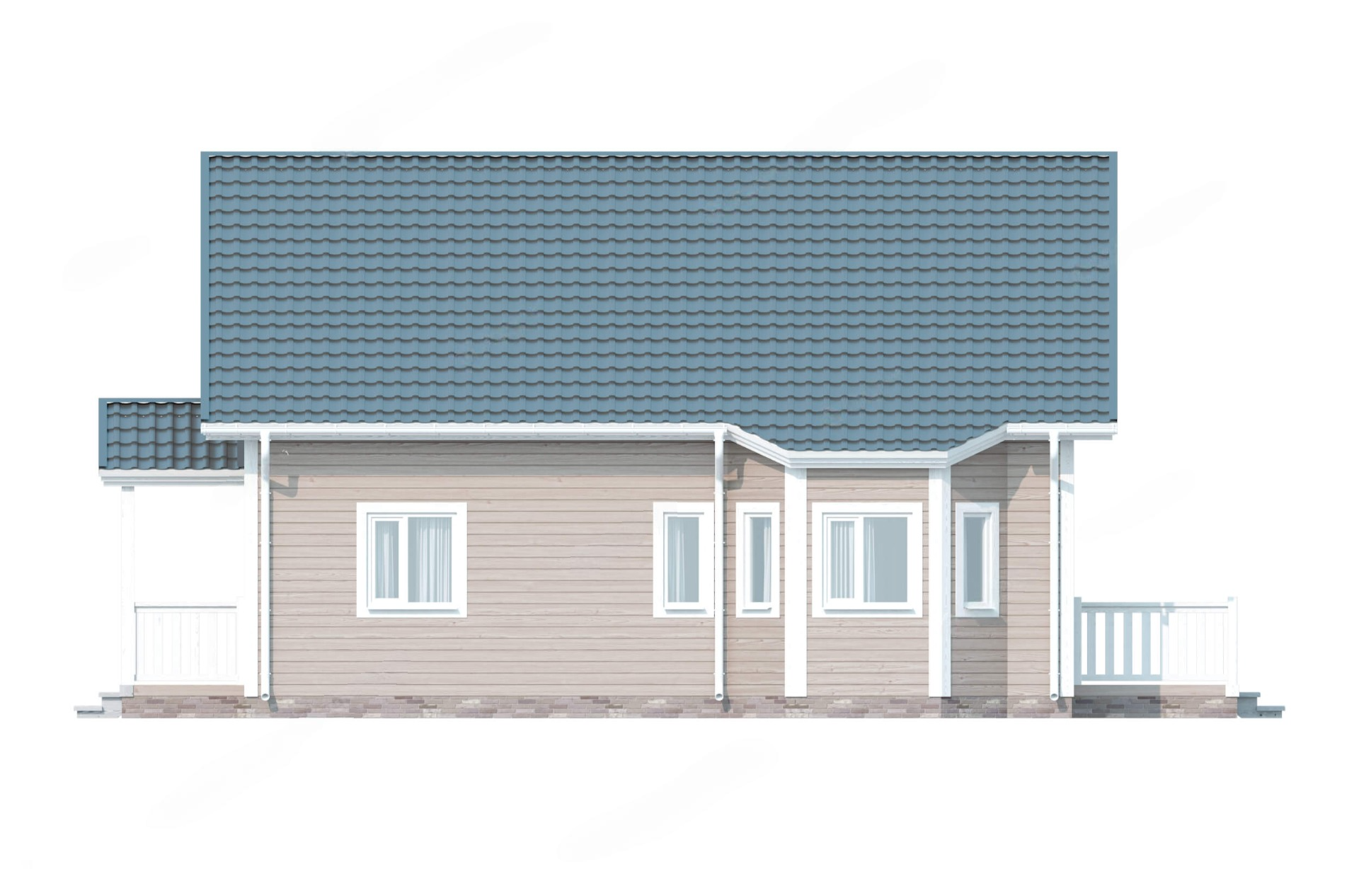 Наличие крыльца в торце дома, эркера, добавляющего внутренним помещениям дополнительную освещенность, а также террасы в 6.40 м² удачно дополняют простую архитектуру дома.