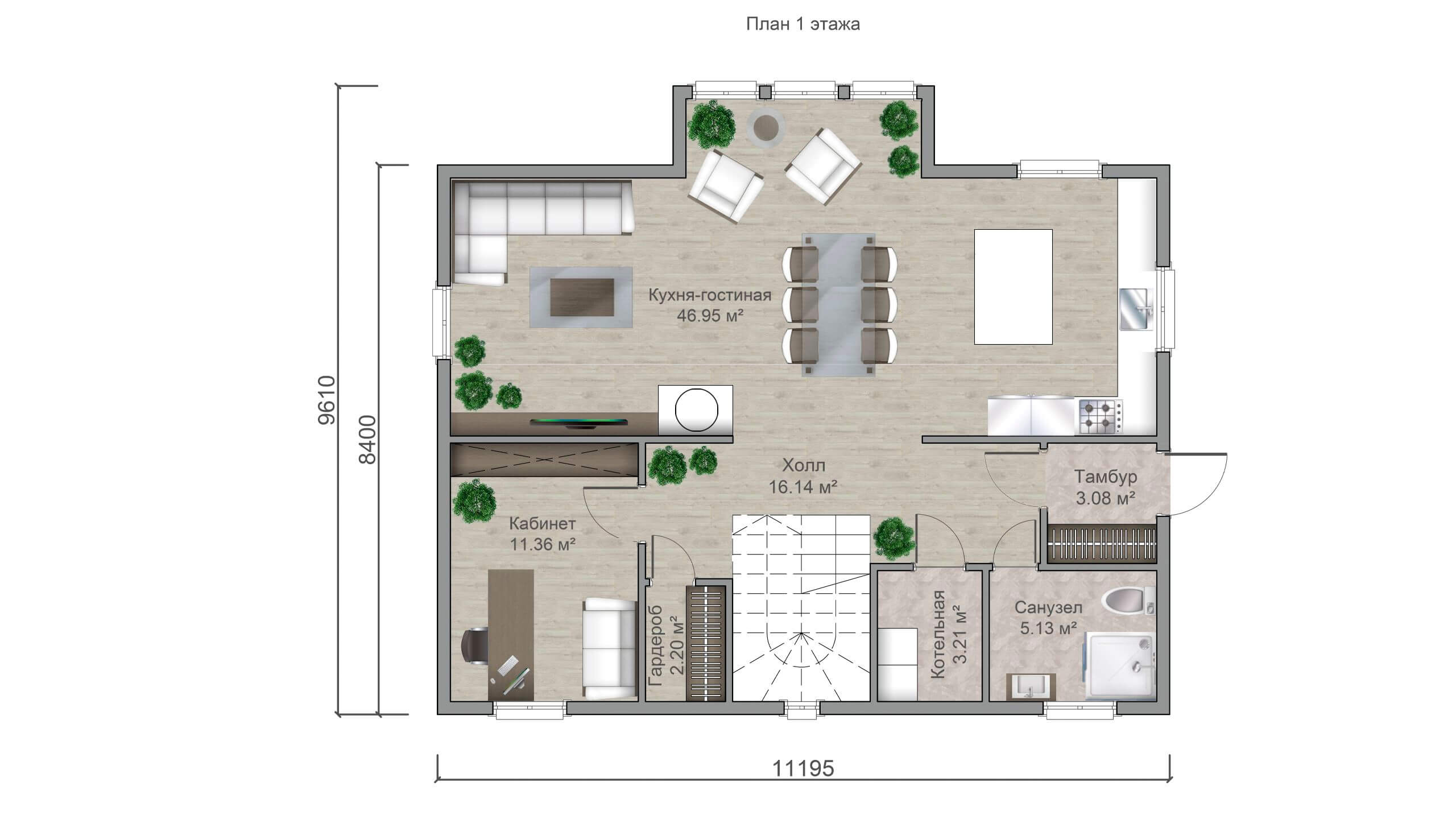 Каркасный дом Мийнола выполнен из высококачественного сухого пиломатериала хвойных пород, дом «дышит». Высокая энергоэффективность дома Мегрега позволит сэкономить на коммунальных платежах, в Вашем доме будет всегда тепло и уютно.