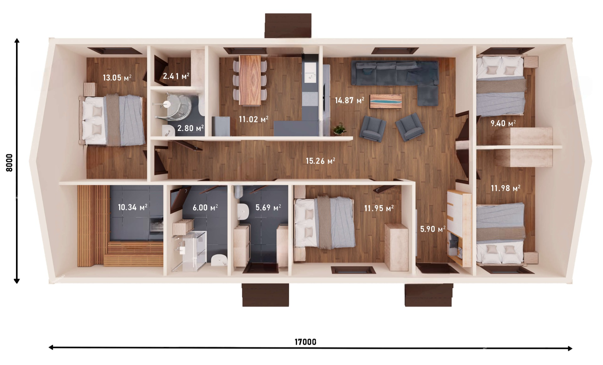 • Спальных комнат: 4 шт.