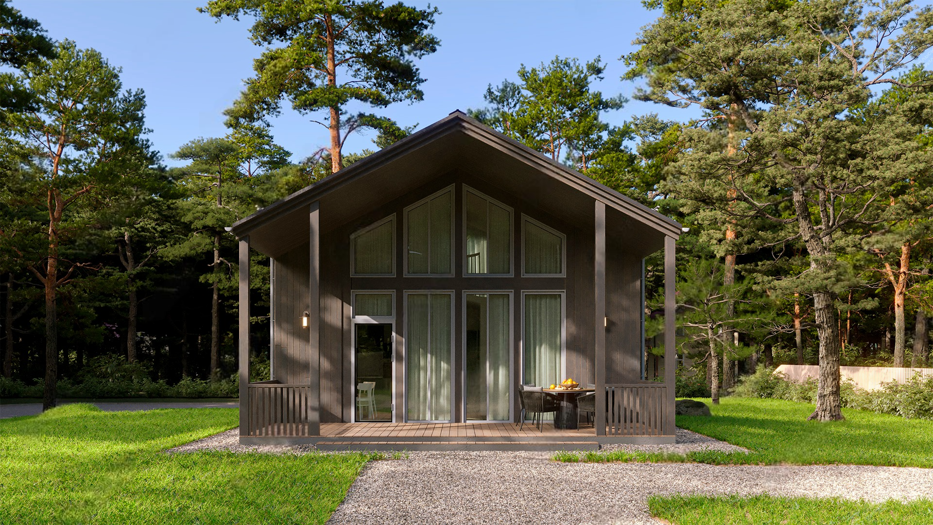 Панорамное остекление на главном фасаде позволит любоваться природой вокруг дома.