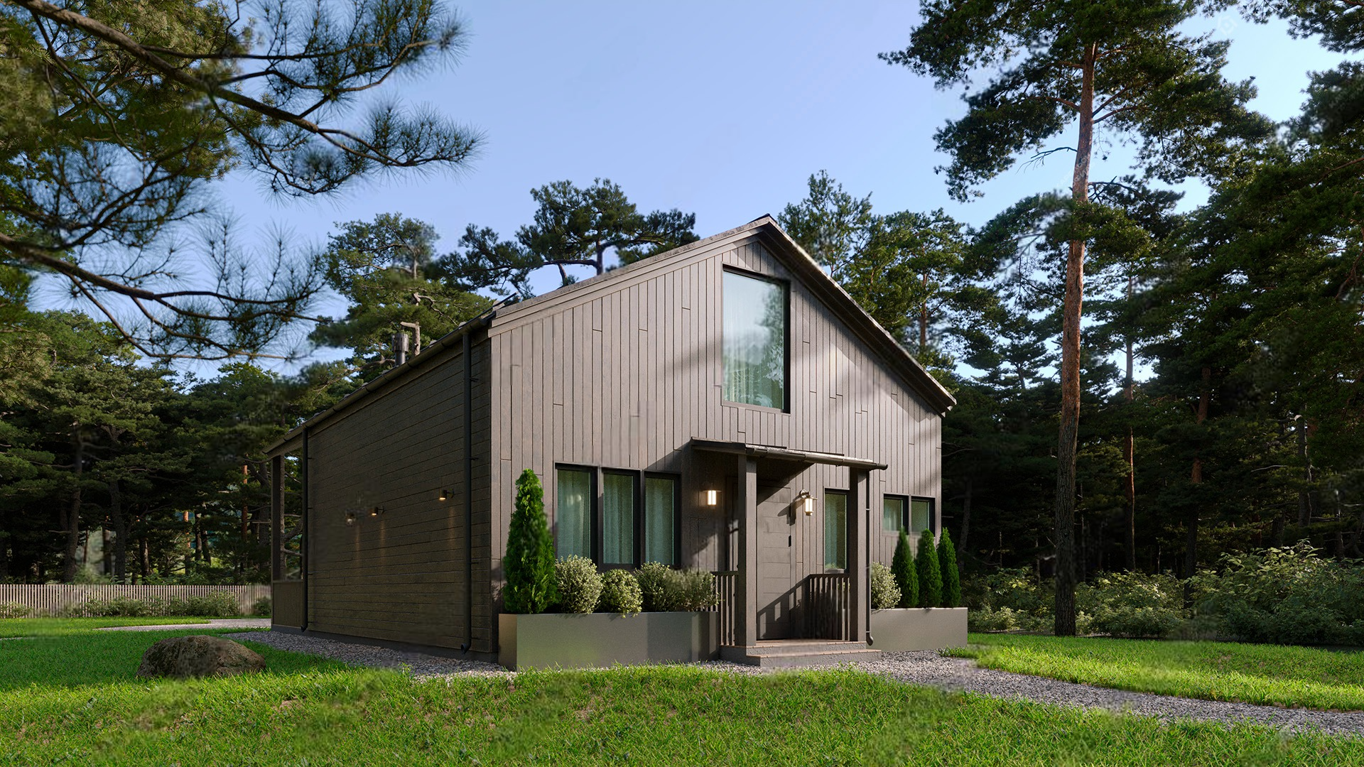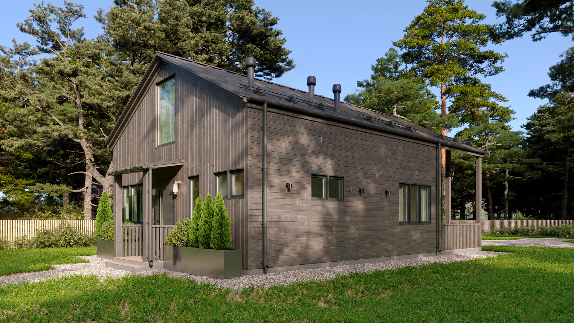 Типовой проект современного каркасного дома с лофтом "Тиурула".