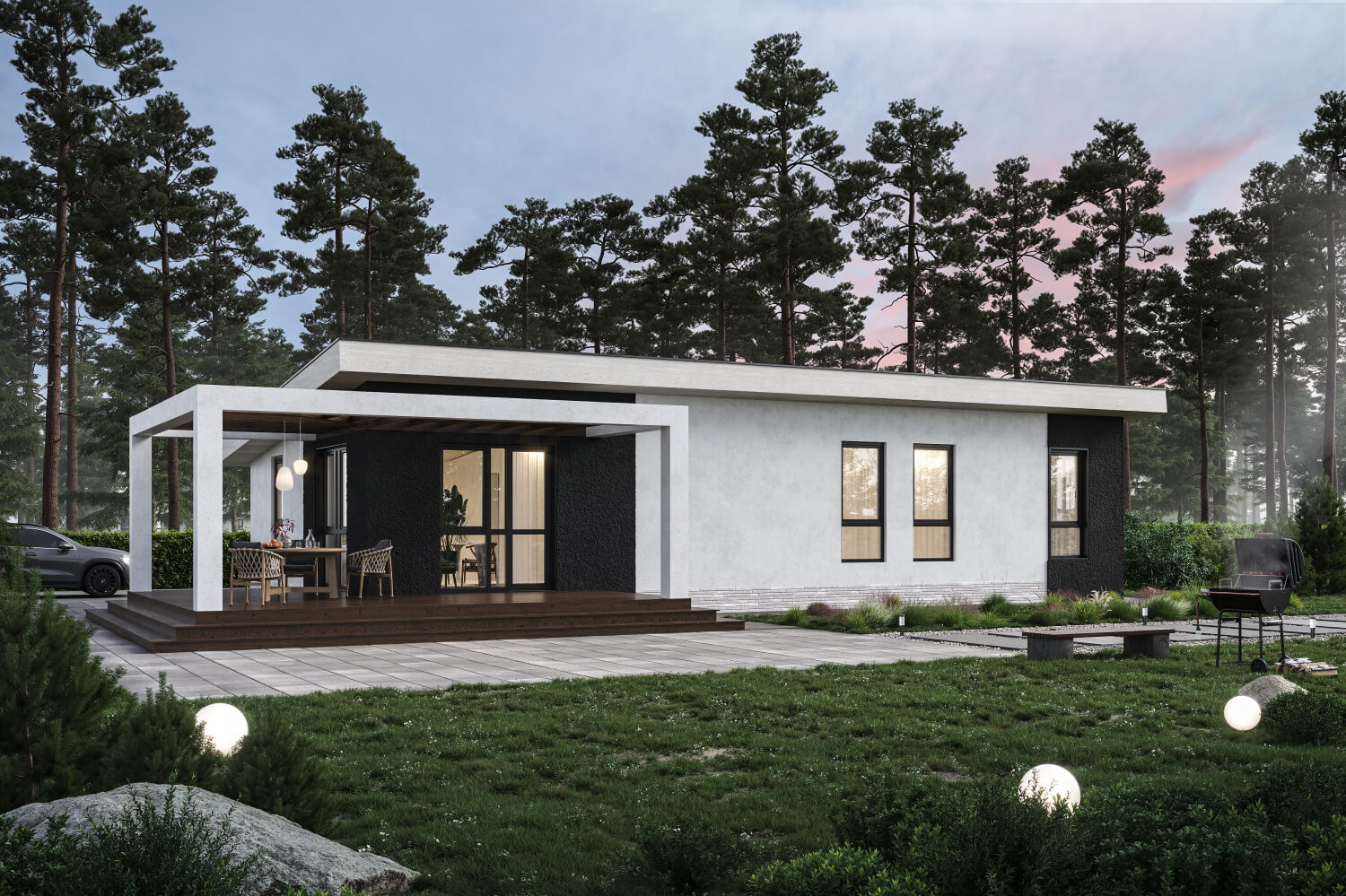 Представляем Вашему вниманию новый проект 2022г. Соответствует всем современным тенденциям, просторные помещения, панорамные окна, открытая терраса. В доме четыре спальни, два санузла и вместительная гардеробная комната.