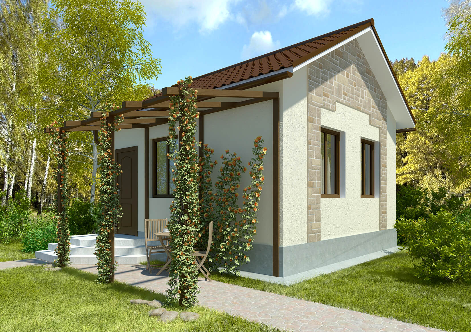Каркасный дом «Утозеро» является отличным вариантом небольшого загородного или гостевого дома. Габариты 5,4м х 6,4м позволят разместить такой дом даже на небольшом участке.