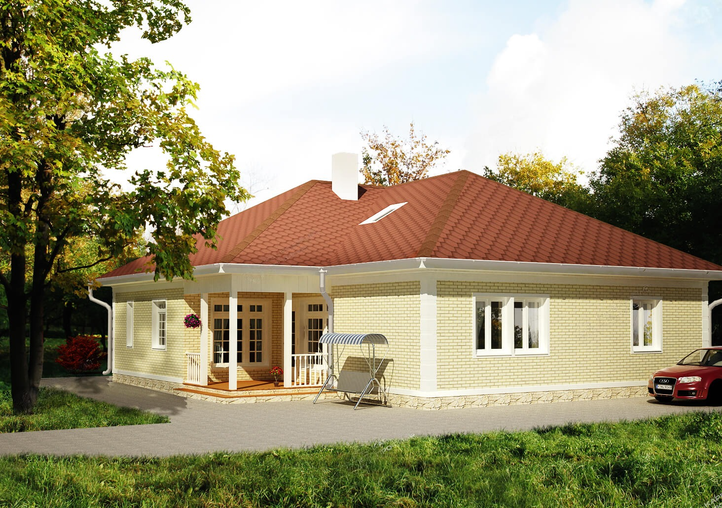 Канадский каркасный дом «Волома». Сложная вальмовая крыша придает дому богатый благородный вид. Благодаря использованию различных кровельных материалов, у Вас есть возможность придать дому еще большей уникальности.
