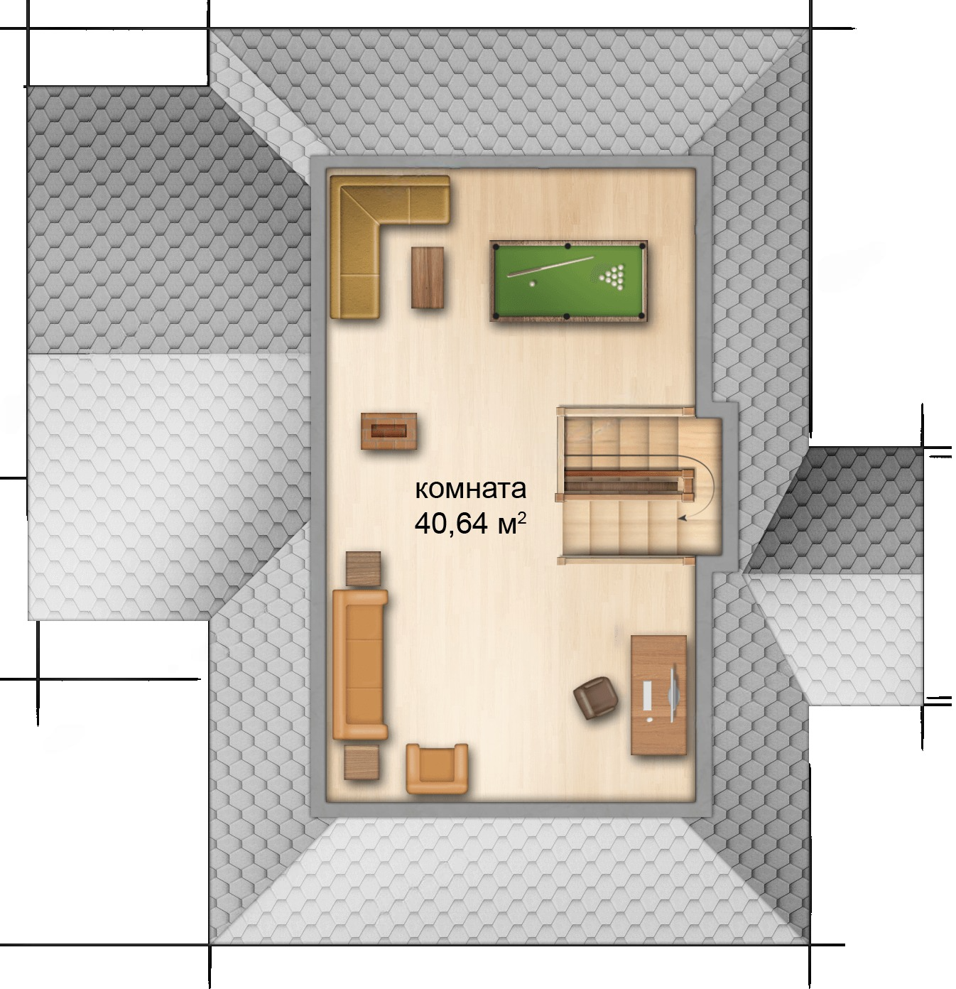 В доме два входа: с крыльца, и с противоположной стороны с террасы. Площадь второго этажа более 40 м2, планировка свободная, это может быть как одно помещение, так и несколько (2-3). Высота второго этажа 2,4 м.