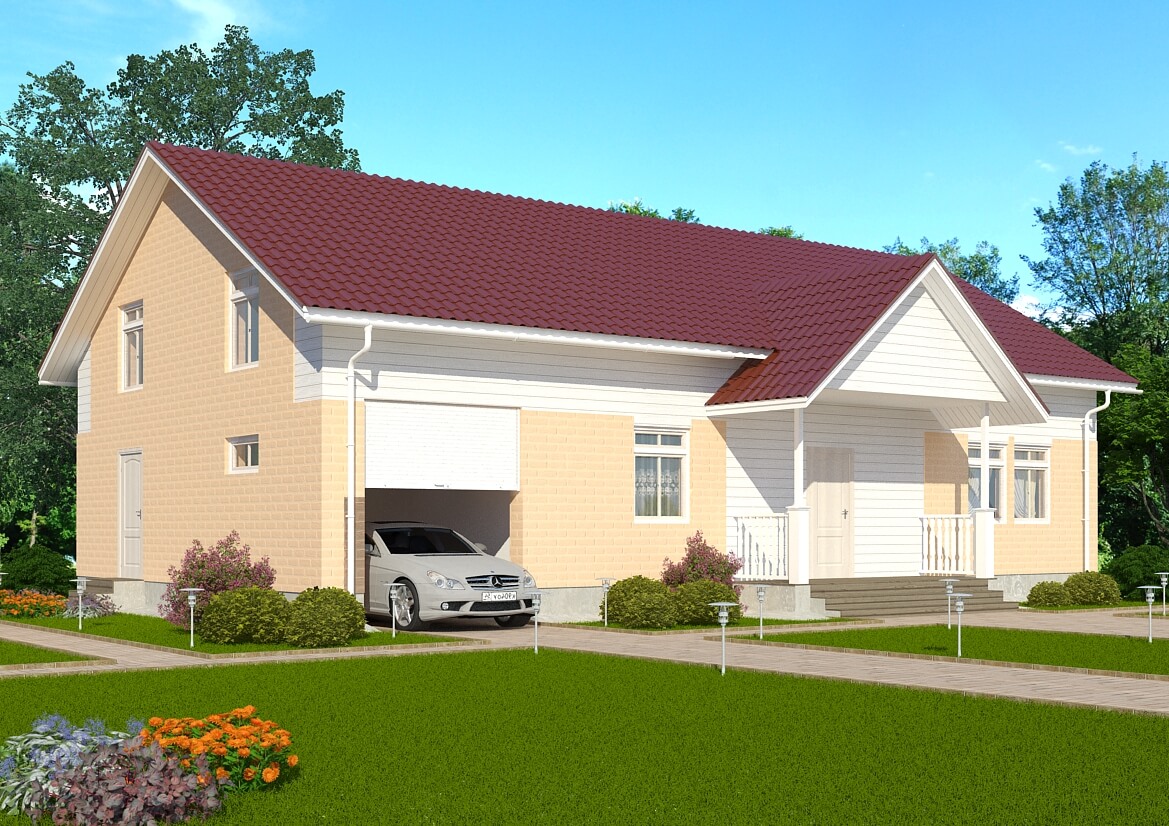 Проектом предусмотрено наличие в доме гаража 18.5 м² с выходом из него в техническое помещение 10.2 м².
