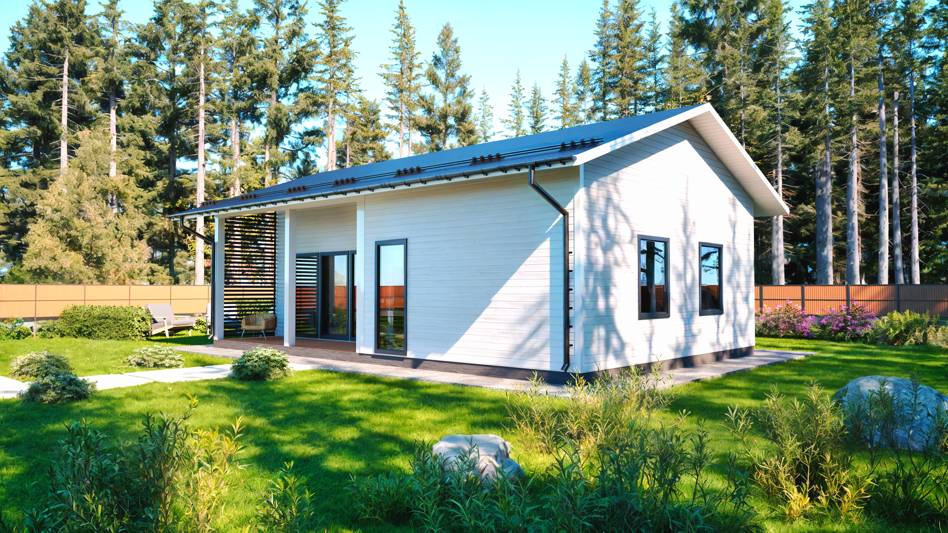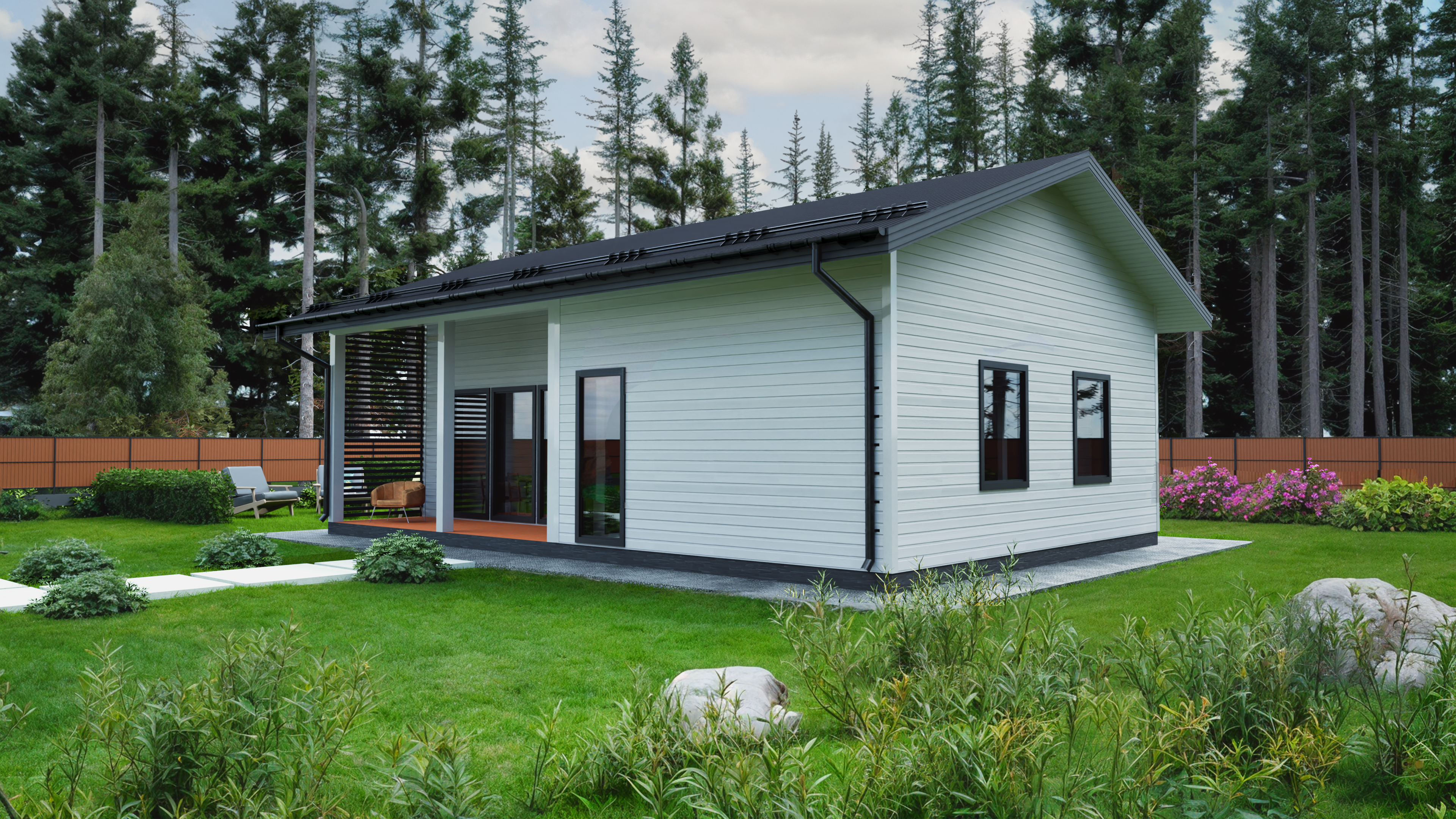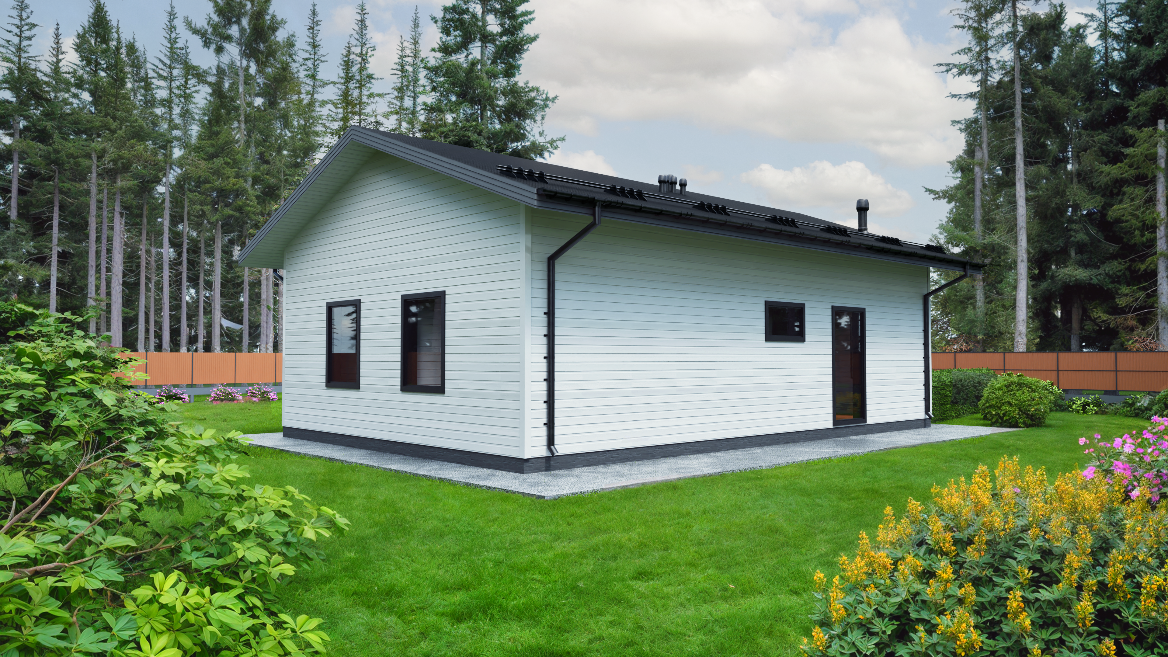 Небольшие габариты дома хорошо разместятся даже на маленьком земельном участке. Каркасный дом Линдозеро удобен для сборки своими руками.